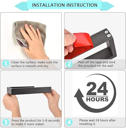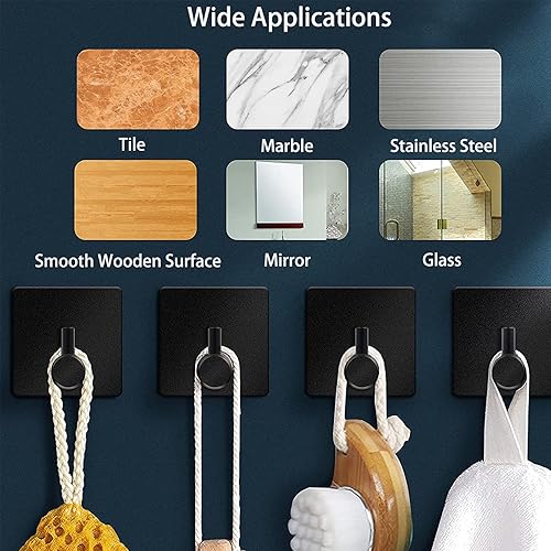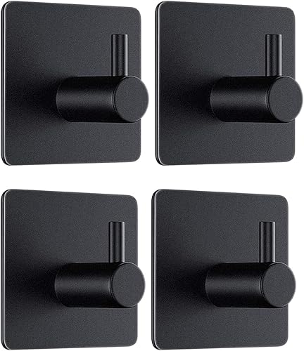 Moutek - Selbstklebende Haken, Matt Aluminiumlegierung 5KG Heavy Duty Wandhaken für Badezimmer Küche Wohnzimmer 4er Pack Schwarz