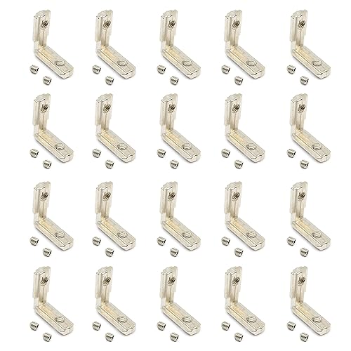 Befenybay 20PCS Schwarzer T-Schlitz L-Form 90 Grad Innen-Innen-Eckverbinder-Verbindungshalterung mit Schrauben für 6-mm-T-Schlitz-Aluminium-Strangpressprofil-Schlitz der Serie 2020