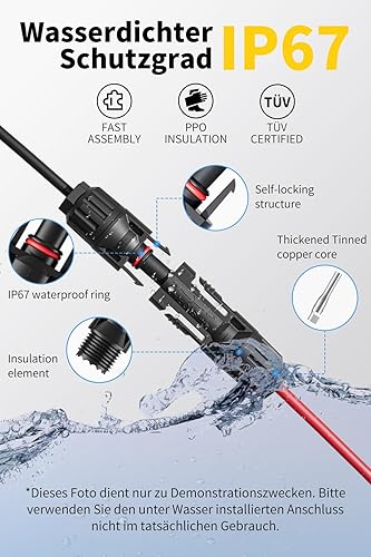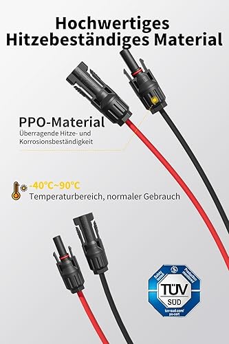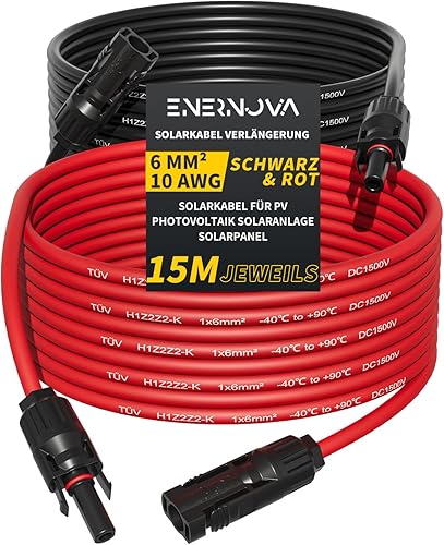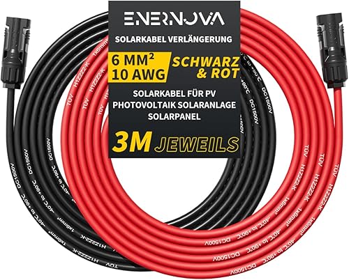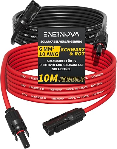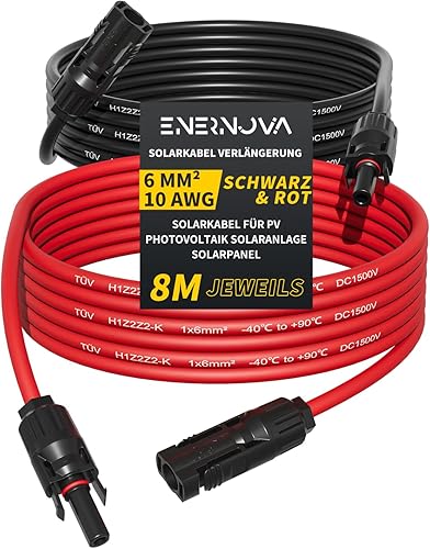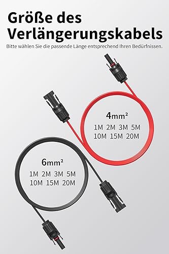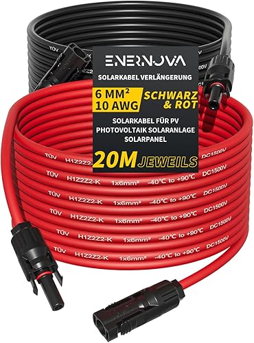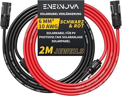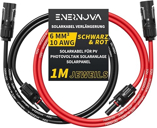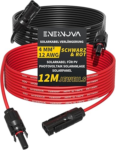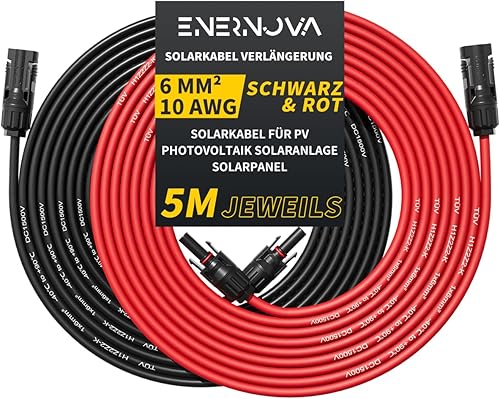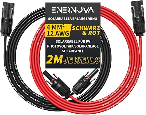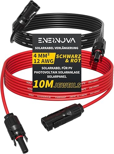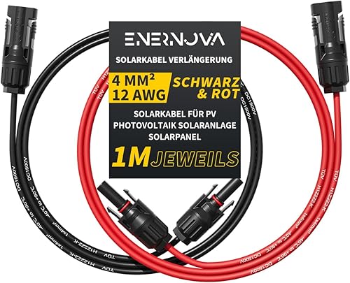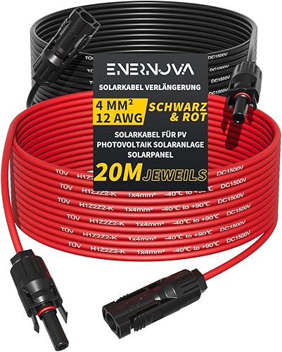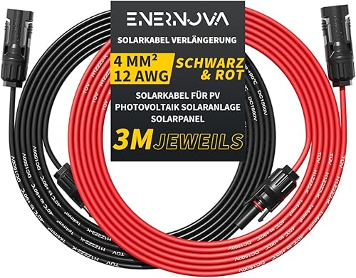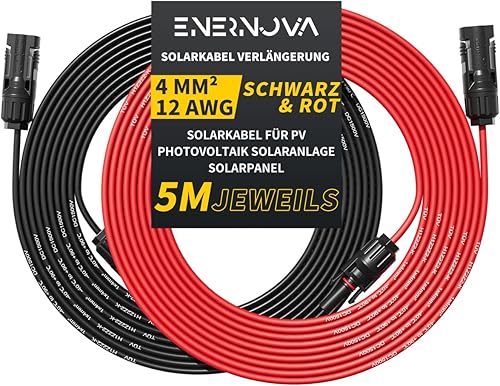 enernova Solarkabel 4mm²/6mm², Solarkabel Verlängerung 1/2/3/5/10/15/20M, Multi-Contact 4 Solarkabel, IP67 Wasserdichtem, Solarkabel Verlängerungskabel(4mm² 5M)