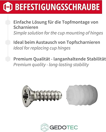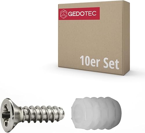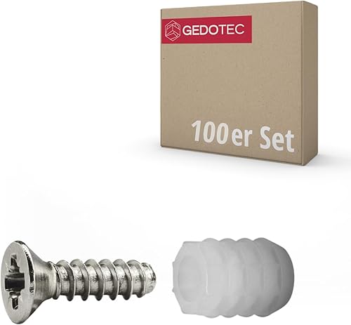 Gedotec Befestigungsschrauben und Dübel | 8 mm Bohr-Ø | 50 Stück | 3,5 x 12 mm Schrauben und 10,8 mm Dübel aus Kunststoff | Topfscharnierbefestigung Möbel, Stangenscharnier, Türscharnier