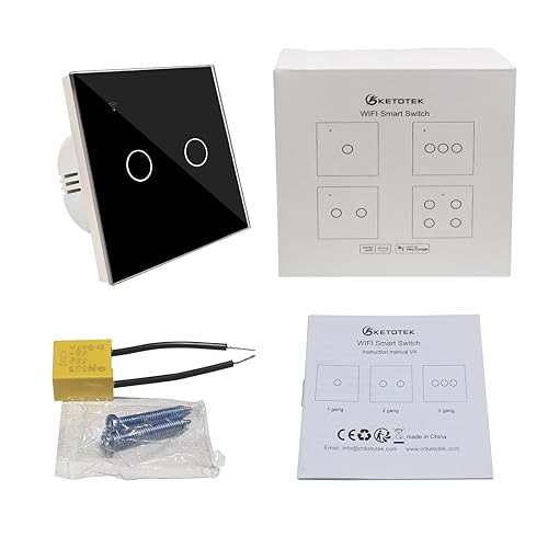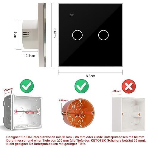 KETOTEK WLAN Lichtschalter Kompatibel mit Alexa, Smart Lichtschalter Unterputz 1fach 1 Wege, WiFi Lichtschalter Touch Glas Tuya/Smart Life App Steuerung