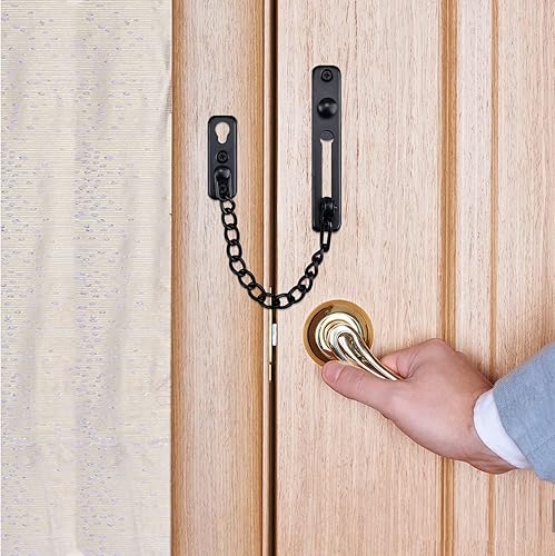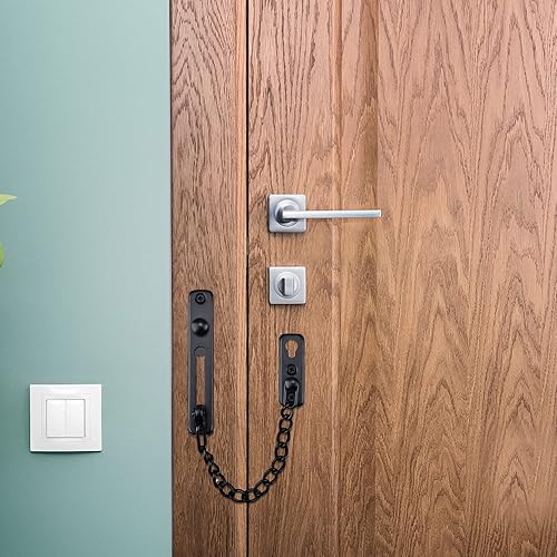 JINXM Schwarze Türkette Tür Sicherheitskette Kettenschloss Türkette aus Edelstahl Gießen Türsicherung Front Kette Kratzschutz mit Schrauben Hardware Hotel Familie