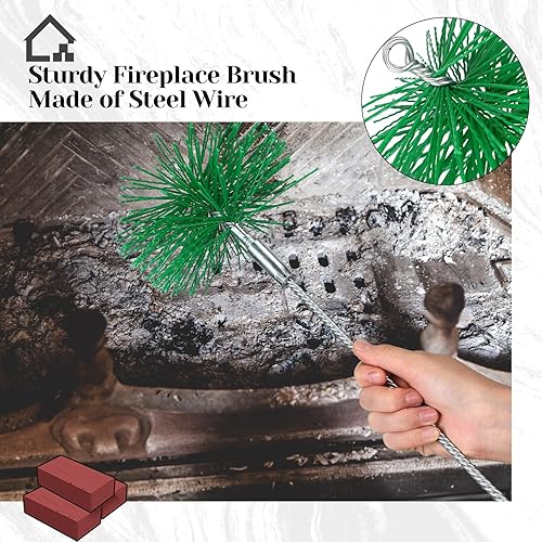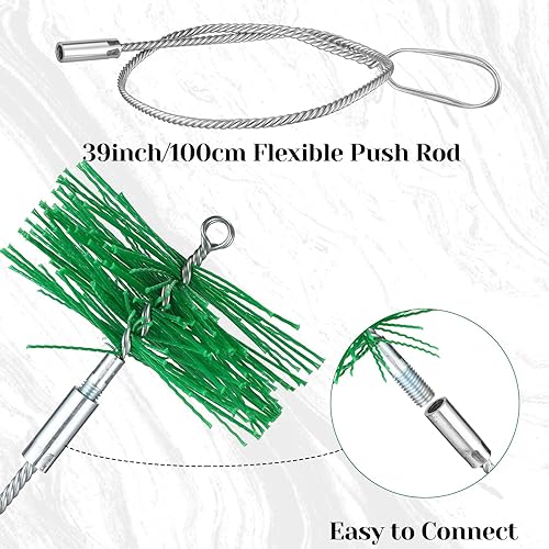 Perthlin 2 Stück Kaminbesen mit 1 Schubstange, Ø 16 cm Ofenrohrbürste Kunststoff Kaminbesen Schornsteinbesen 1 m Edelstahl Flexstange Kaminrohr Reinigungsbürste Bürste für Kamin Schornstein Ofen