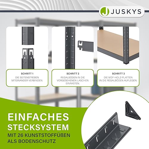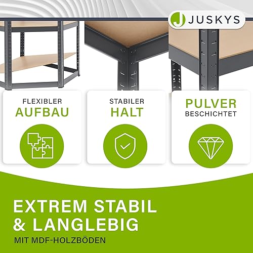 Juskys 3er Metall Regalsystem Easy - 1 Eckregal & 2 Lagerregale - 12 Böden aus MDF Holz - 960 kg - Schwerlastregal Steckregal