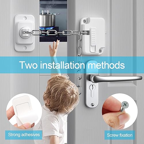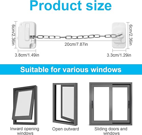2 Stück Fensterschlösser türkette ohne bohren, Fenstersicherungen Kinder für UPVC, kindersicherung verstellbares Fensterschloss Für Fenster, Türen, Autofenster, Schränke, Schubladen