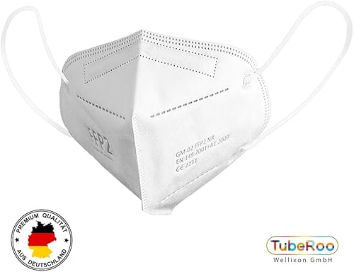 TubeRoo FFP2 Maske 10 Stück Masken, Made in Germany, Versand aus Deutschland, weiche runde Ohrschlaufen Bänder, Atemschutzmaske, Mundschutz, Staubmaske, Feinstaub, Feinstaubmaske, Staubschutzmaske