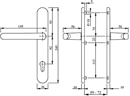 Haeusler Schmalrahmen Türdrücker SRG 1600 PZ 92mm Dr/Dr Alu ES1 Drückergarnitur