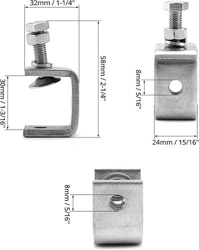 QWORK® 8 Stück 304 Edelstahl C Zwingen, Hochleistungs C Klemme, für Heimwerker Holzbearbeitung, Schweißtischlerei, Silber