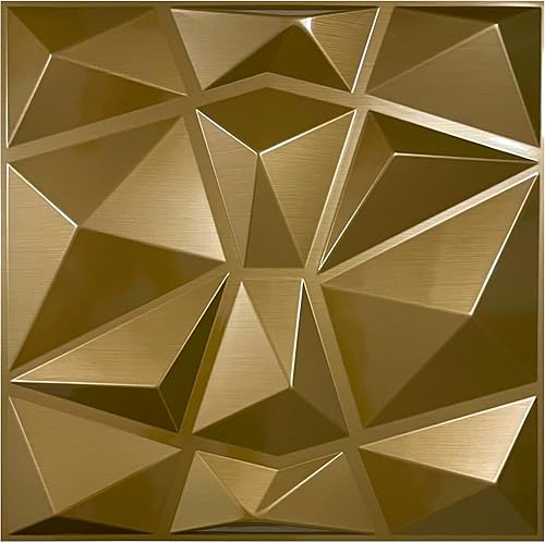 Gold 3D Paneele PVC 50cm x 50cm Kunststoffpaneele 20 Stück Wandpaneele Brushed Gaming Zimmer Wand Decke 3D Optik Diamant PVC 3D Platten