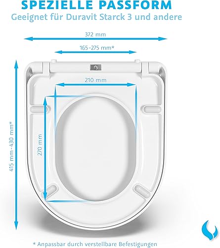 Bullseat® WC Sitz passend zu Duravit Starck 2/3 mit Absenkautomatik/Softclose, abnehmbar, Antibakteriell, Quick-Release Toilettendeckel weiß überlappend Klobrille hochwertiges Duroplast