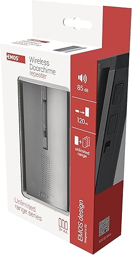 EMOS P5763R Kabellose Türklingel, Ersatz/Zusatz-Repeater zu P5760 und P5763 - unbegrenzte Reichweite, batteriebetrieben, 5-stufige Lautstärke bis zu 85 dB, LED-Anzeige, 16 Melodien, Speicherfunktion