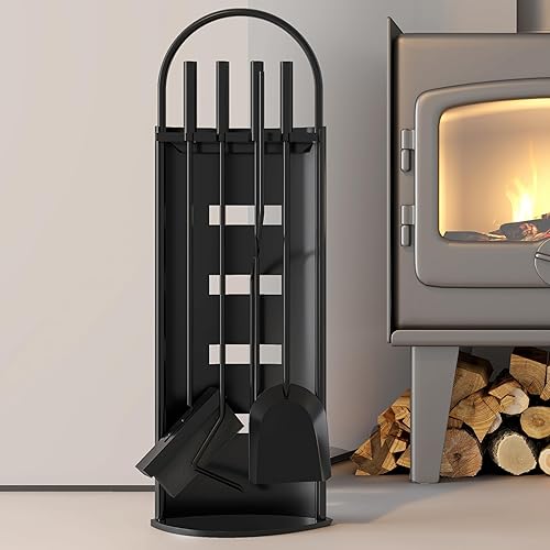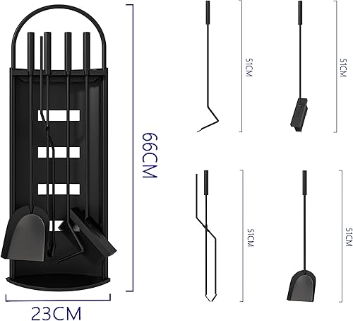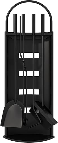 Kingson Kaminbesteck schwarz 5-teilig 22x16x66cm Komplettset für Kaminofen Kaminzubehör für effiziente Kaminpflege