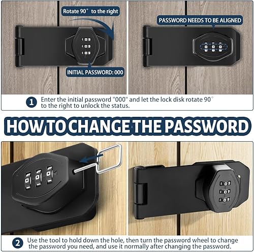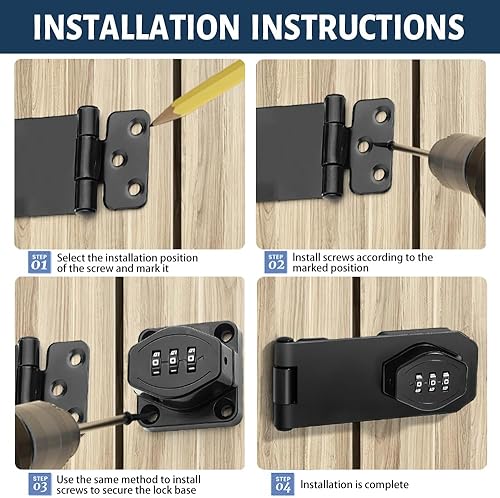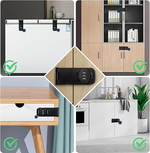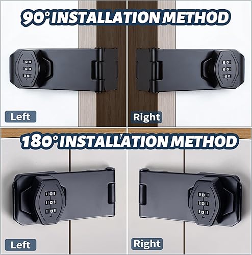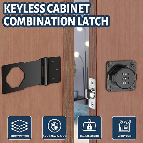 Überfalle abschließbar 4 Zoll Sicherheits Haspe, Zahlenschloss TÜRverschluss Schrankschloss Schwarz Metall Türriegel für kleine Türen in Schränken, Schubladenschrank