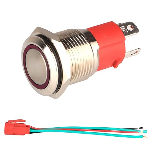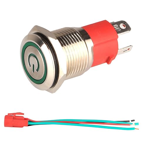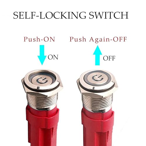 GUUZI 220V-230V/15A Selbstverriegelung Druckknopfschalter NO Wasserdichtes Blaues LED-Licht Beleuchtet 16mm Metall-Power-Start-Drucktaster mit Steckdosen-Stecker-Kabel
