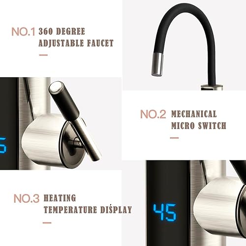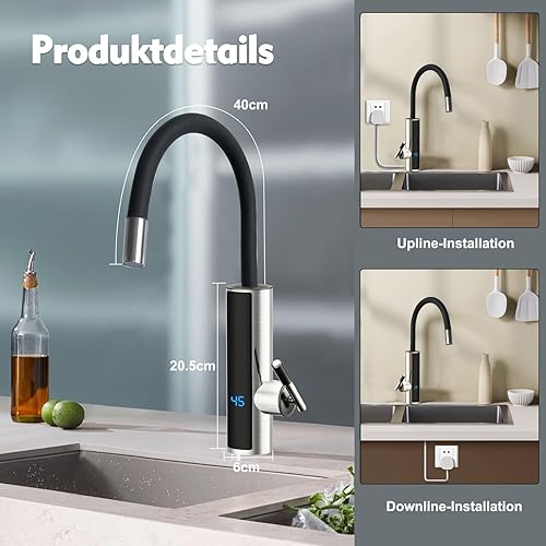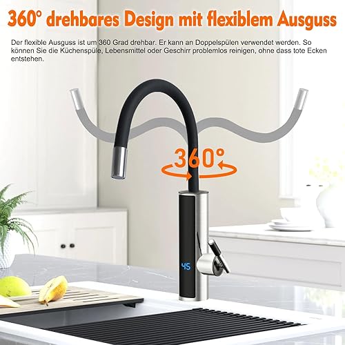 Wasserhahn mit Durchlauferhitzer 230V Küche Edelstahl Elektrischer Durchlauferhitzer Wasserhahn mit 360 ° Drehbarer Wasserhahn,LED-temperaturanzeige