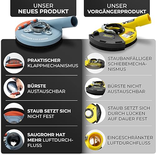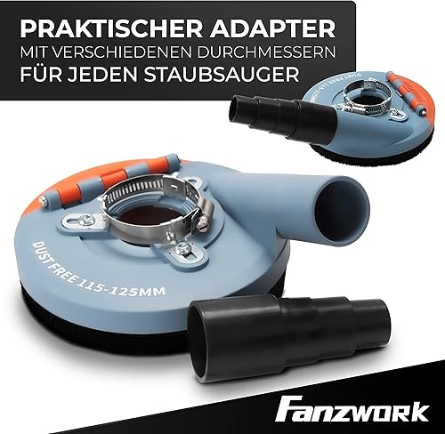 FANZWORK Absaugaufsatz Absaughaube für Winkelschleifer inkl. 125 mm Diamantschleiftopf PROFI QUALITÄT – Bürsten auswechselbar – 99% universal passend – verstärkter Adapterring – M14 Adapter…