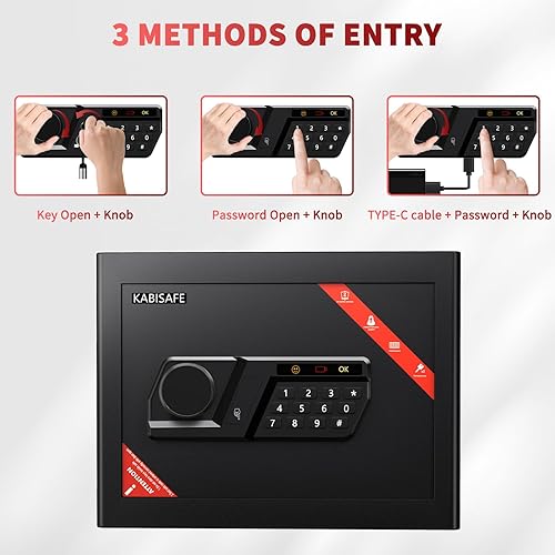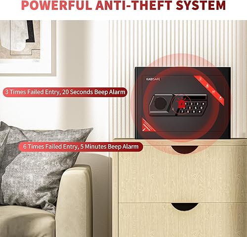 KABISAFE 20L Safe Tresor für Zuhause, Möbeltresor mit Zahlenschloss,Digitaler Tresor mit Herausnehmbares Regal und Alarmanlage,Wandtresor für Schmuck Bargeld Dokumente