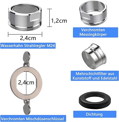 Wasserhahn Sieb M24, COOLUCK 10 Stück Wasserhahn Strahlregler Aufsatz Außengewinde, Mischdüse Einsatz mit Edelstahlfilter und Verchromten Mischdüsenschlüssel, für Wasserhähne