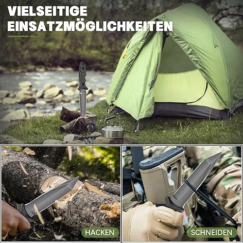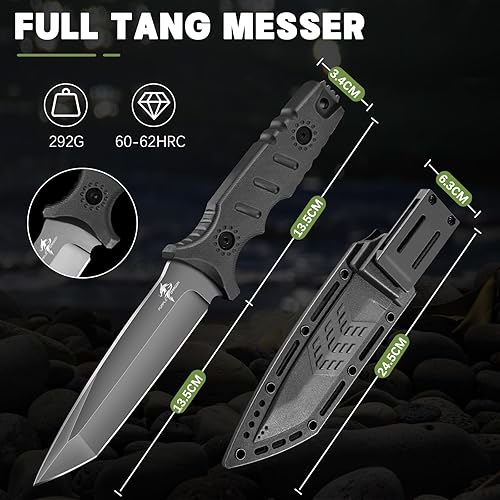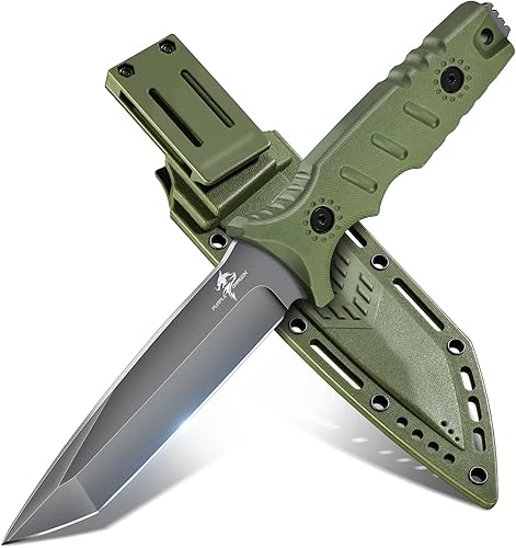 Purple Dragon Outdoor Messer Survival Messer mit Kydex Scheide, Jagdmesser Feststehende Klinge aus einem Stück D2 Stahl, Full Tang Bushcraft Messer G10 Griff für Camping, Geschenke für Männer, Khaki