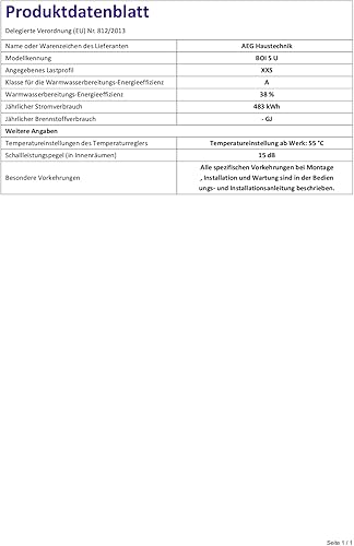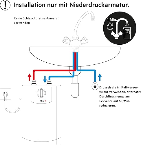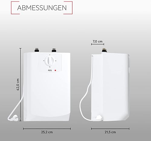 AEG Boiler BOI 5 U, Untertischboiler 5 Liter Niederdruck mit Stecker 230V für Küchenspüle + Wachbecken, 2 kW, Made in Germany, 204616