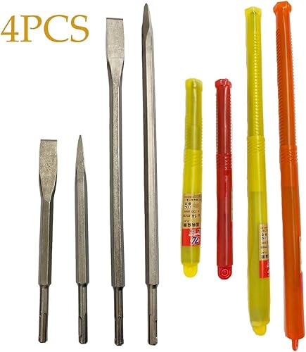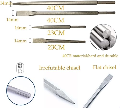 SDS-plus Meißel Set 4tlg,400mm/230mm lang Flachmeißel und Spitzmeißel,Professional Meißel, Meißel für elektrische Bohrmaschinen und Spitzhacken zum Aufbrechen von Mauern und Gebäuden