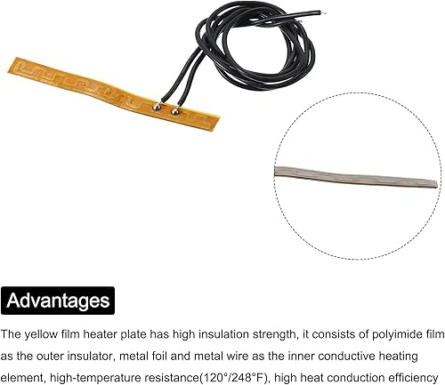 QUARKZMAN Heizfolie Heizplatte, 2,6W 3,7V Polyimid Heizpad, selbstklebende PI Heizelemente Folie 57mmx6mm Heizstreifen für konstante Temperatur, Packung mit 4 Stück