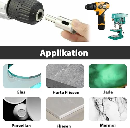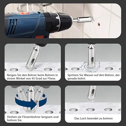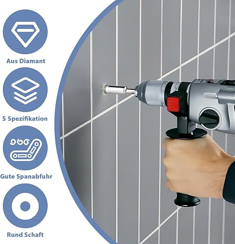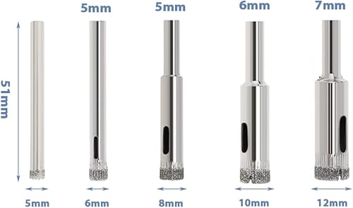 Treki 10 Stück Diamant Fliesenbohrer 5mm/6mm/8mm/10mm/12mm Fliesen Diamantbohrer für Akkuschrauber, Glasbohrer Keramikbohrer Marmorbohrer Feinsteinzeug Bohrer für Porzellan Granit Marmor