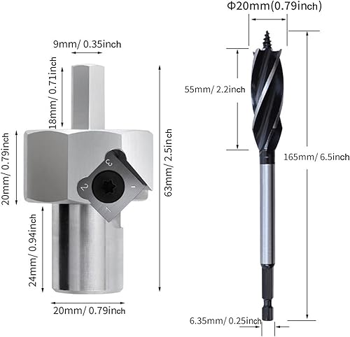 MagiDeal 20 mm Bank-Hundeloch-Fasenreibahle, Anfaswerkzeug für elektrische Bohrmaschinen, professionelle, leichte Aluminiumlegierung, abnehmbare Klinge, mit Bohrer