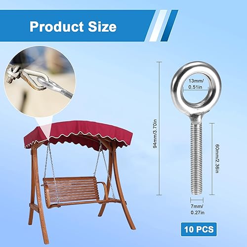 10 Stück Ösenschraube M8, Außengewinde Ringschraube M8 Edelstahl, Ringschrauben Lang, Ringmutter M8*60 mm, Augenschraube M8, Schraubhaken M8 für Befestigens, Hängens, Den Innen, Außenbereich