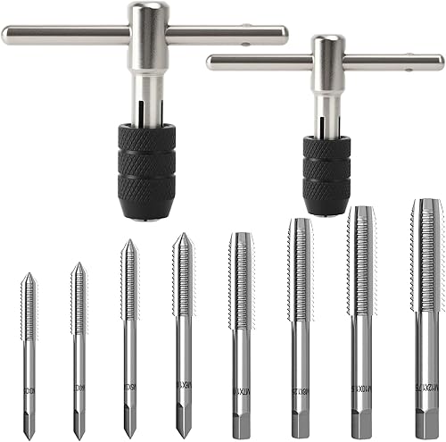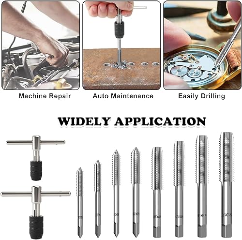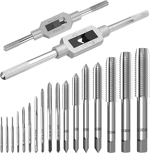 19 Stück Metrisches Gewindeschneider Gewindebohrer Set, Handgewindegewindebohrer-Set, M1-M3,5, M4, M5, M6, M8, M10, M12 Tap and Die Set, Gewindeschneidsatz Profi mit Einstellbar Windeisen