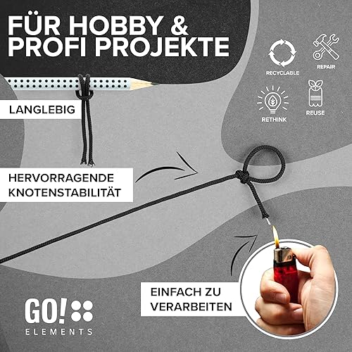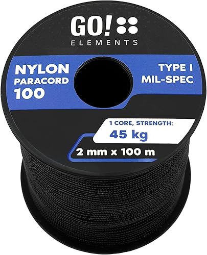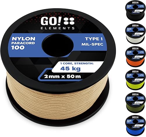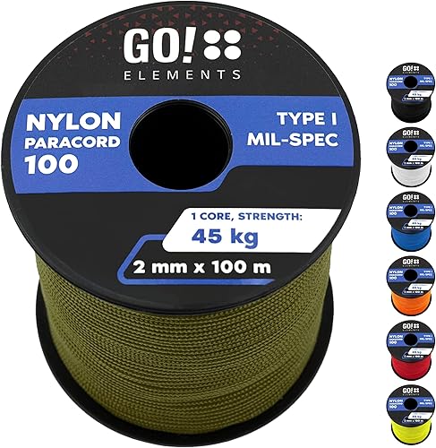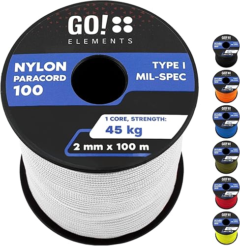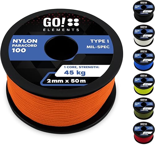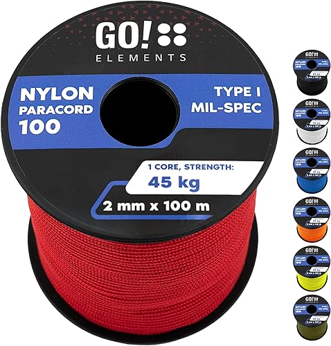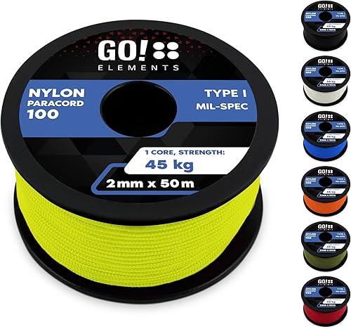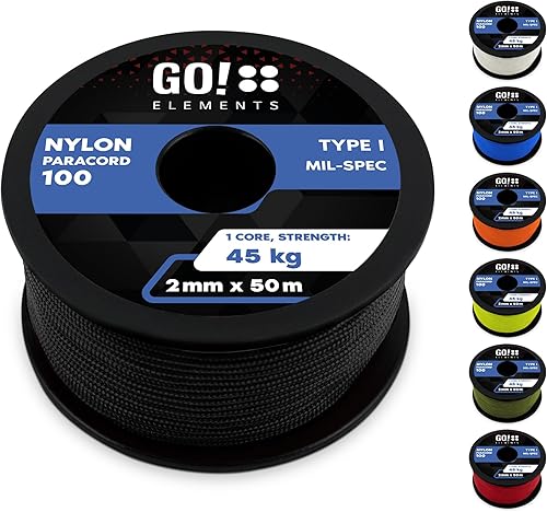 GO!elements Paracord 2mm Seil aus reißfester Nylonschnur - Paracord 100 Typ I Survival Schnur - Reißfest bis 45kg - geeignet als Allzweckseil, Reepschnur, Kordel, Maurerschnur