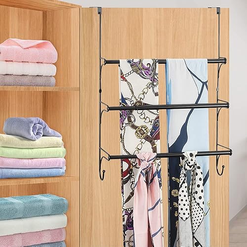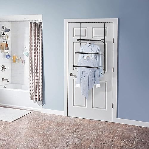 Handtuchhalter 3-Schicht Edelstahl Teleskop Tür Wand-Badetuch Aufhänge Ohne Bohren Handtuch Stange für Badezimmer Dusche, Schwarz