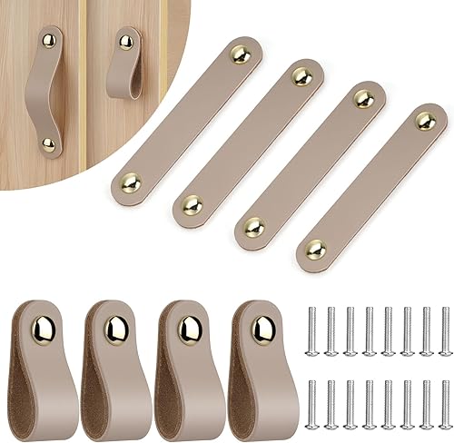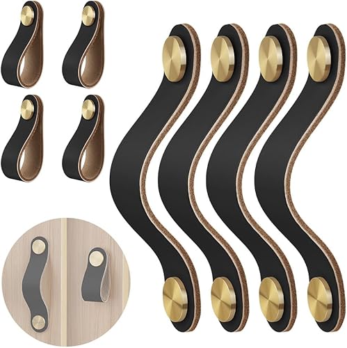 flintronic Ledergriffe für Möbel, 4 Stück Handgemachte Griff Möbelknöpfe Leder, Vintage Möbelgriffe Ledergriff Schrankgriffe für Küchenschränke, Kleiderschrank, Bad