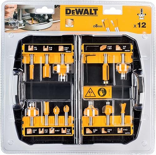 DEWALT 12-tlg. Hartmetall Fräser-Set (mit Anti Kickback Design, Premium Stahlkörper, HM Schneidplatten und austauschbarem Kugellager, inkl. Box) DT90016