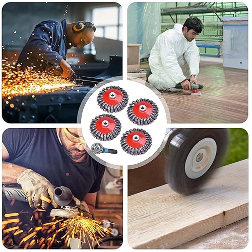 Drahtbürste Winkelschleifer: 4 Stück M14 125mm Drahtbürsten für Winkelschleifer, Winkelschleifer Scheibenbürste Topfbürste Winkelschleifer Drahtbürste Set für Poliere, Entzunder und Entgrate (4)