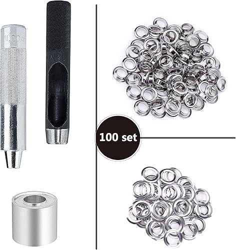 Grommet Werkzeug Kit, Tülle Ösen Scheiben Ösenzange Set und 100 Sets Grommet Ösen mit für Planen Leder Stoff Vorhang Poolabdeckung (1/2 Zoll(12mm))