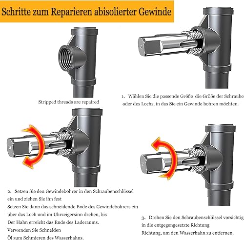 Rohrgewindebohrer Set,Kohlenstoffstahl Gewindeschneider 1/2 zoll Innengewinde, Einschnittgewindebohrer, für Wasserrohrverbindungen, Autoreparatur und Maschinen