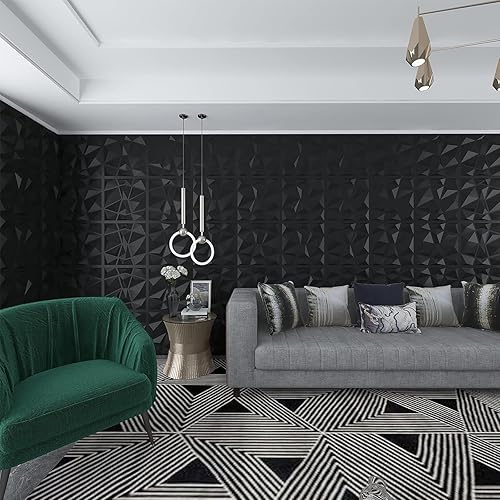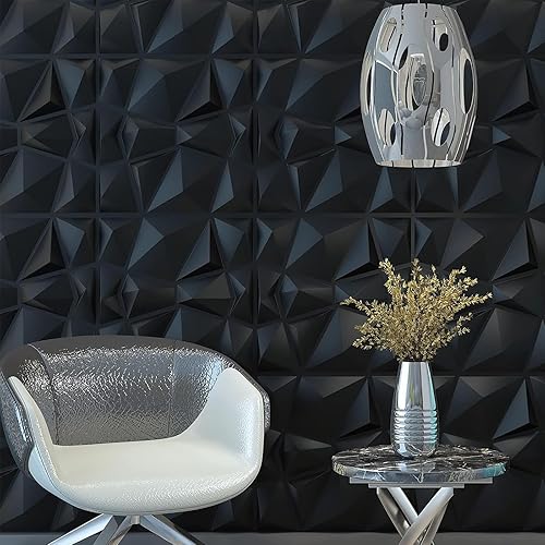 3D Wandpaneele 3D Paneele PVC Platte 3D Wandpaneele 3D Wall Panels Fassadenverkleidung Deckenplatten Gaming Wall Panels Paneele Tapete Schwarz für Wohnzimmer, Schlafzimmer 12 Stück
