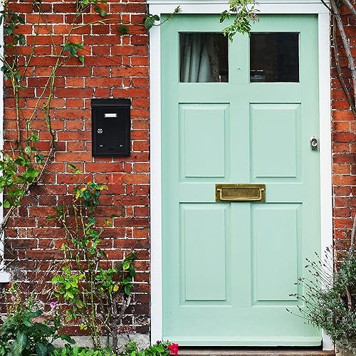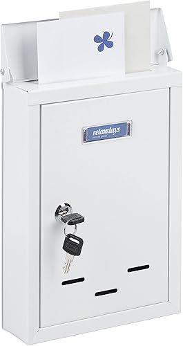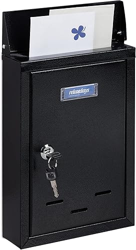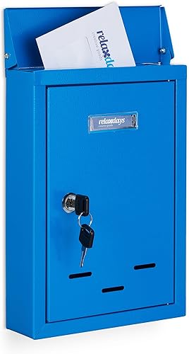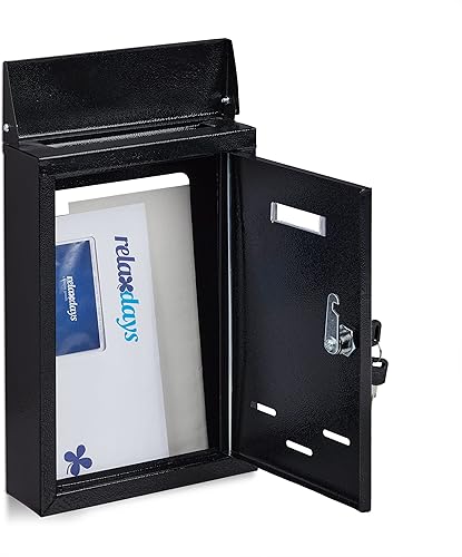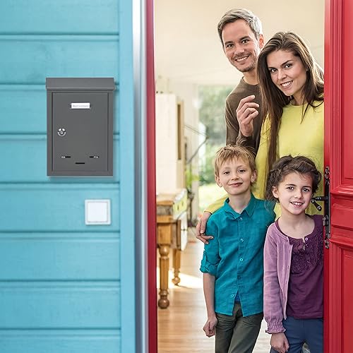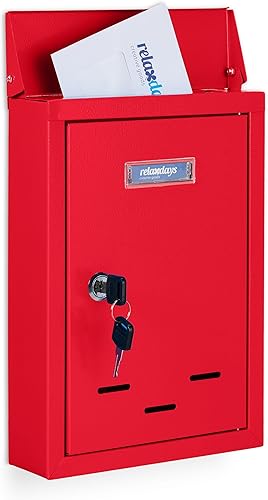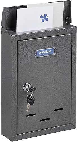Relaxdays Letter Box with Name Plate Briefkasten mit Namensschild, aus Metall, mit 2 Schlüsseln, Postkasten schmal, HxBxT: 30,5 x 21 x 7 cm, grau, Kunststoff, Eisen