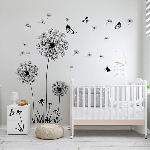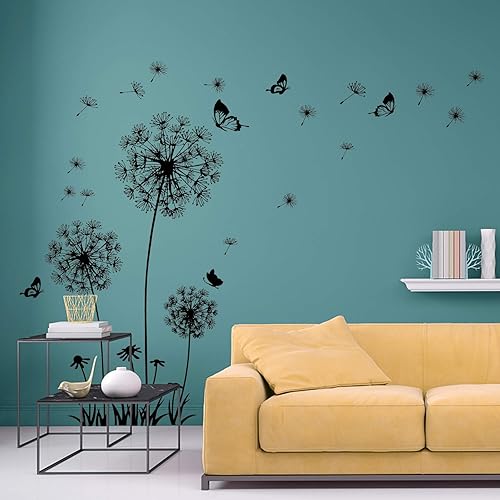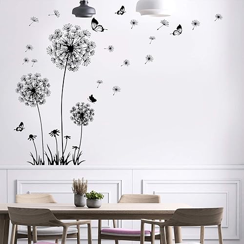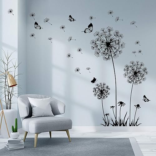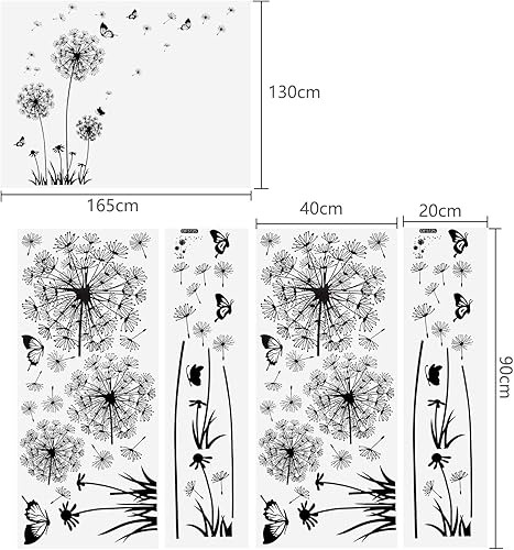 2 Stück Schwarz Wandtattoo Pusteblumen für Wanddeko,XXL Groß Löwenzahn Blumen Pflanzen Wandsticker Wandaufkleber Kleben Aufkleber Wandbilder für Wohnzimmer Schlafzimmer Vorraum Flur Fenster 165X130cm