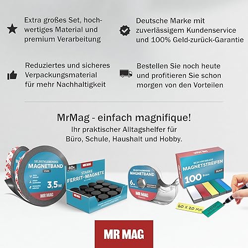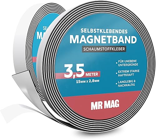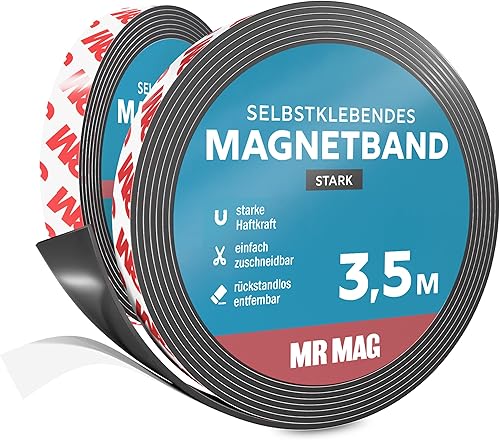 MrMag® Magnetband selbstklebend stark | extra lang | hochwertiges Magnetklebeband mit starkem Kleber | Magnetstreifen