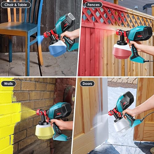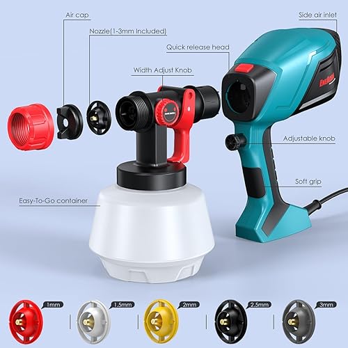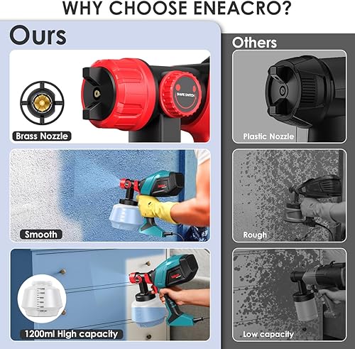 ENEACRO HVLP Farbsprühsystem 720W Lackierpistole mit 1200ml Behälter, 5 Messingdüsen(1-3mm), Verstellbarer Fließgeschwindigkeit und Sprühwinkel, 360° Einstellbares Sprühmuster