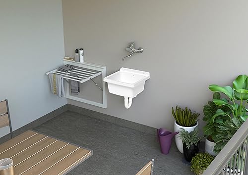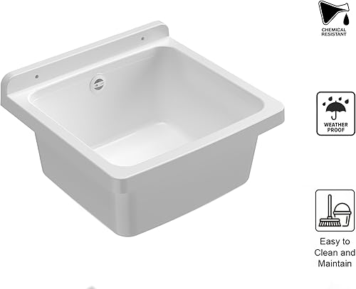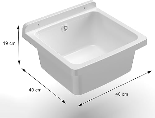 Adventa: Wanne aus PP-Kunstharz, Wandbefestigung, kompakt, mit Siphon und Ablaufgarnitur, beständig gegen Säuren, Waschküche, Garage, Außenbereich, 40 x 40 x 19 cm, weiß