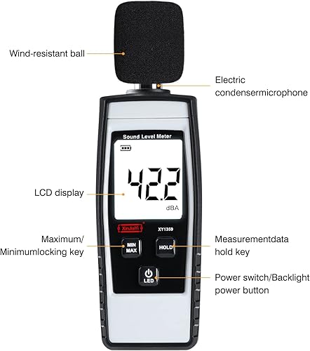 XinJiaYi Dezibel Messgerät, Tragbares db Messgerät (Schallpegelmessgerät), digitales Geräuschmessgerät, Bereich 30-130 dB(A) dB-Messgerät, Geräuschpegel-Soundmonitortester Gelb