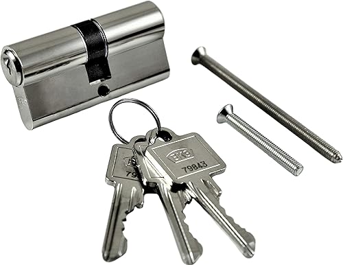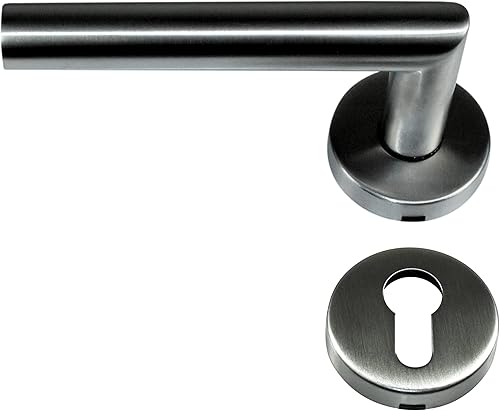 SN-TEC Zimmertür/Wohnungstür Komplett Set, Edelstahl Rosetten Beschlag L-Form (beidseitig Drücker) + PZ Schloss (DIN Links) + Profilzylinder incl. 3x Schlüssel