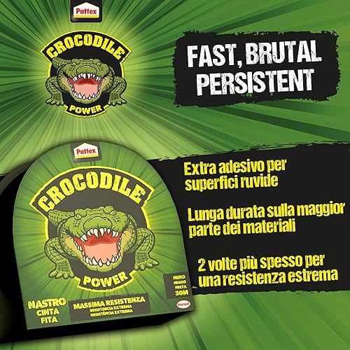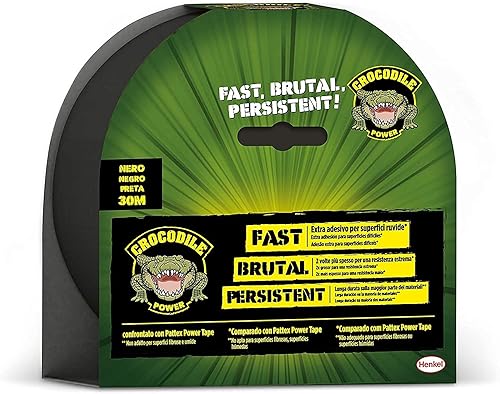 Pattex Crocodile Power Tape Leistungsstarkes Klebeband 2 mal dicker, extra starkes schwarzes Reparaturband, Klebeband für viele Materialien, 30 m x 50 mm