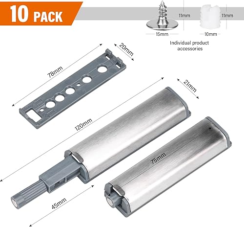 HATANSE 10 Stück Drucktüröffner Aluminium Push to Open Türöffner Softclose Türdämpfer Magnetischer Türschnäpper Schrank für Viele Schränke