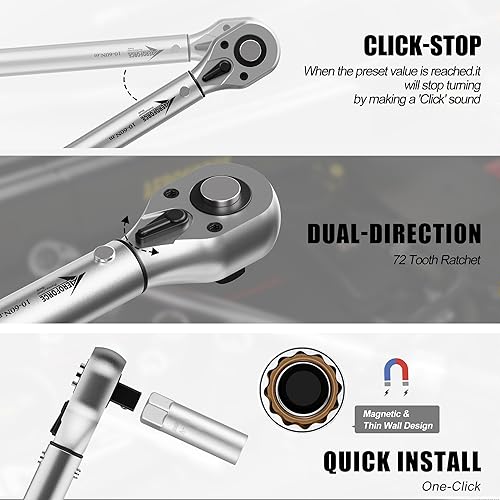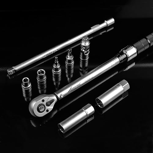 AEROFORCE Drehmomentschlüssel Set 3/8' 9TLG 10-60 Nm, Dual-Richtungsumkehr, ±3% Fehlergenauigkeit, mit Magnetische Zündkerzenhülse, für Motorräder und Autos