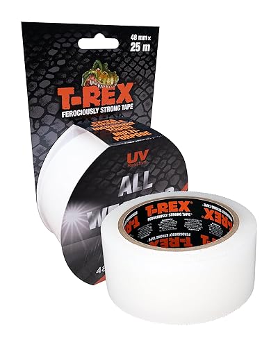 T-Rex 823-00 All Weather Tape – Transparentes Klebeband für Unauffällige Reparaturen im Innen- & Außenbereich – Wetterfest & Vielseitig – 48mm x 25m