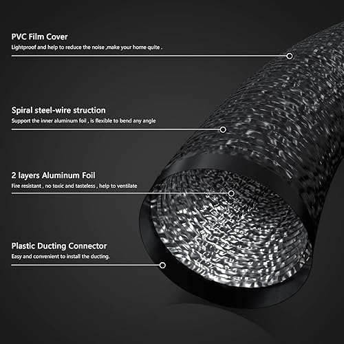 Aygrochy 150mm PVC Abluftschlauch, 3 Meters Lüftungsschlauch mit 2 Schlauchschelle Edelstahl für Mobile Klimaanlage, Trockner, Abluftventilator, Abzugshaube, Belüftungssystem